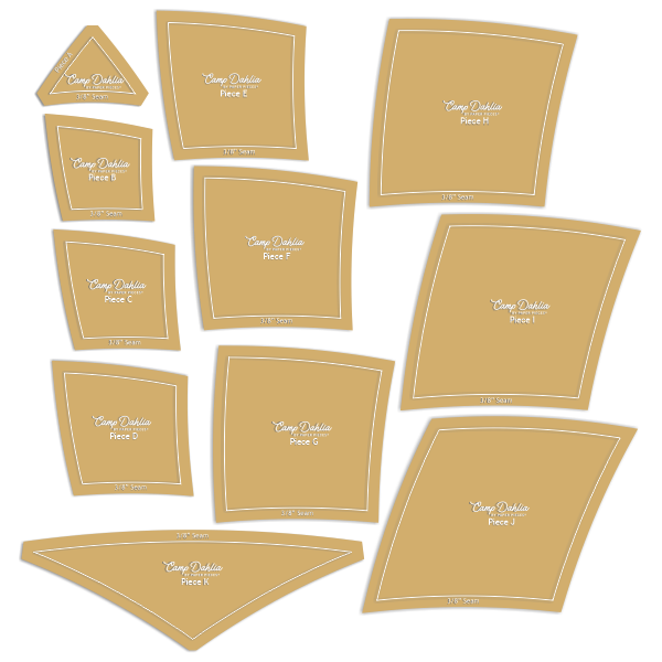 Dahlia quilts have long symbolized celebration and craftsmanship, their layered petals unfolding in precise symmetry and radiating outward from a powerful center. Camp Dahlia continues that tradition in an English Paper Pieced design built from repeating arcs that form a striking circular medallion.