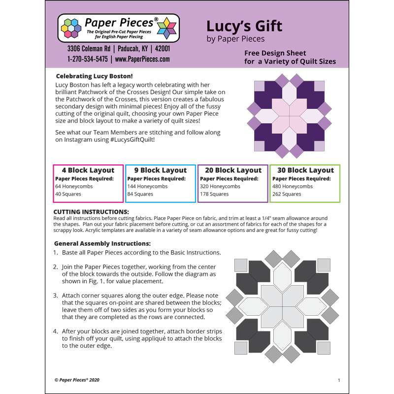 Lucy Boston has left a legacy worth celebrating with her brilliant Patchwork of the Crosses Design! Our simple take on the Patchwork of the Crosses, this version creates a fabulous secondary design with minimal pieces! Enjoy all of the fussy cutting of the original quilt, choosing your own Paper Piece size and block layout to make a variety of quilt sizes!
