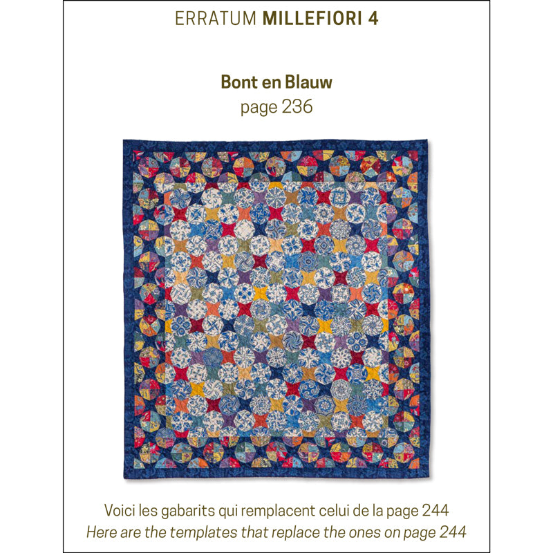Bont en Blauw Pattern Errata from Millefiori Quilts 4 (Original Printing) by Willyne Hammerstein for Quilt Mania.