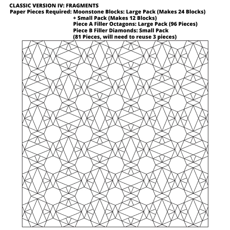 In the classic version of this quilt, the blocks are joined together by Piece A Filler Octagons and Piece B Filler Diamonds. The beauty of Moonstone lies in the way that you lay out your blocks and the way you choose your fabrics.