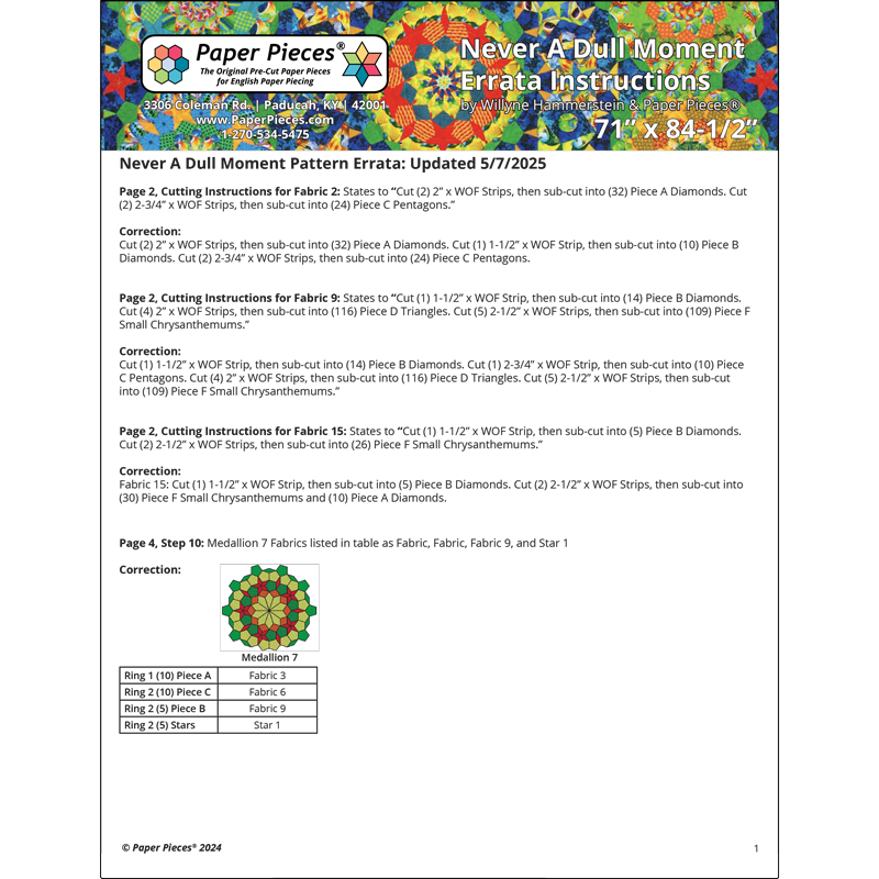 Oops! If you purchased the Never A Dull Moment Pattern Pack prior to 5/7/25 , please accept this pattern errata.