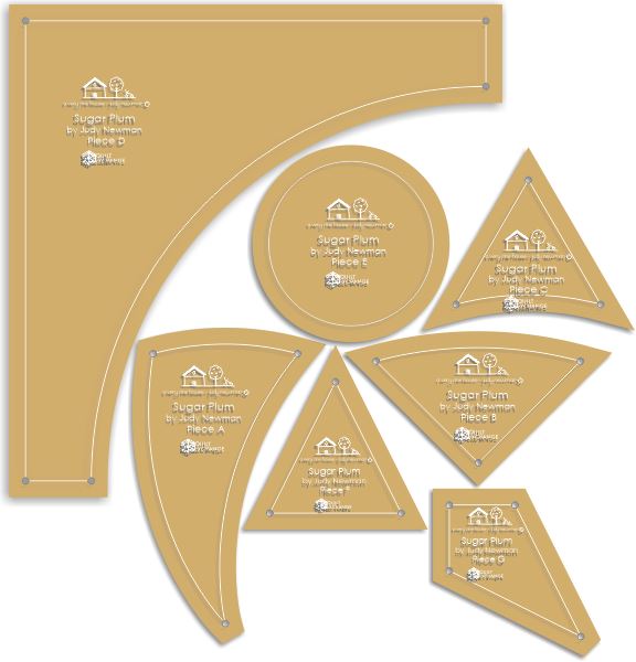 Acrylic Fabric Cutting Template: Sugar Plum by Judy Newman (7 Piece Set) with 1/4" Seam Allowance and marking holes