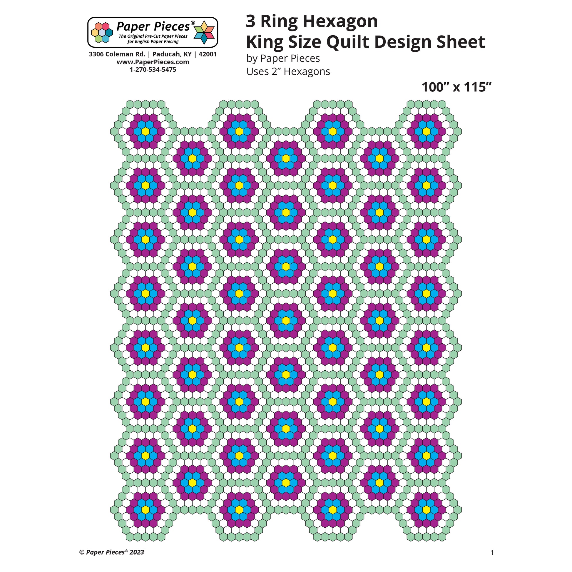 Three Ring Hexagon King Size Quilt Design Sheet (FREE PDF Download)